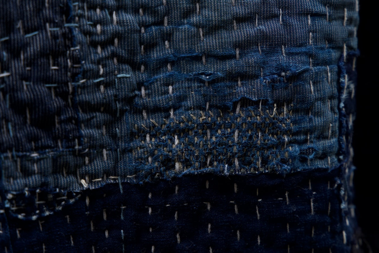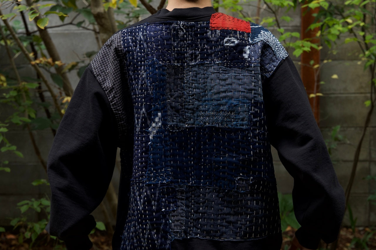 A garment that embodies the essence of boro (Japanese patchwork) across the back.