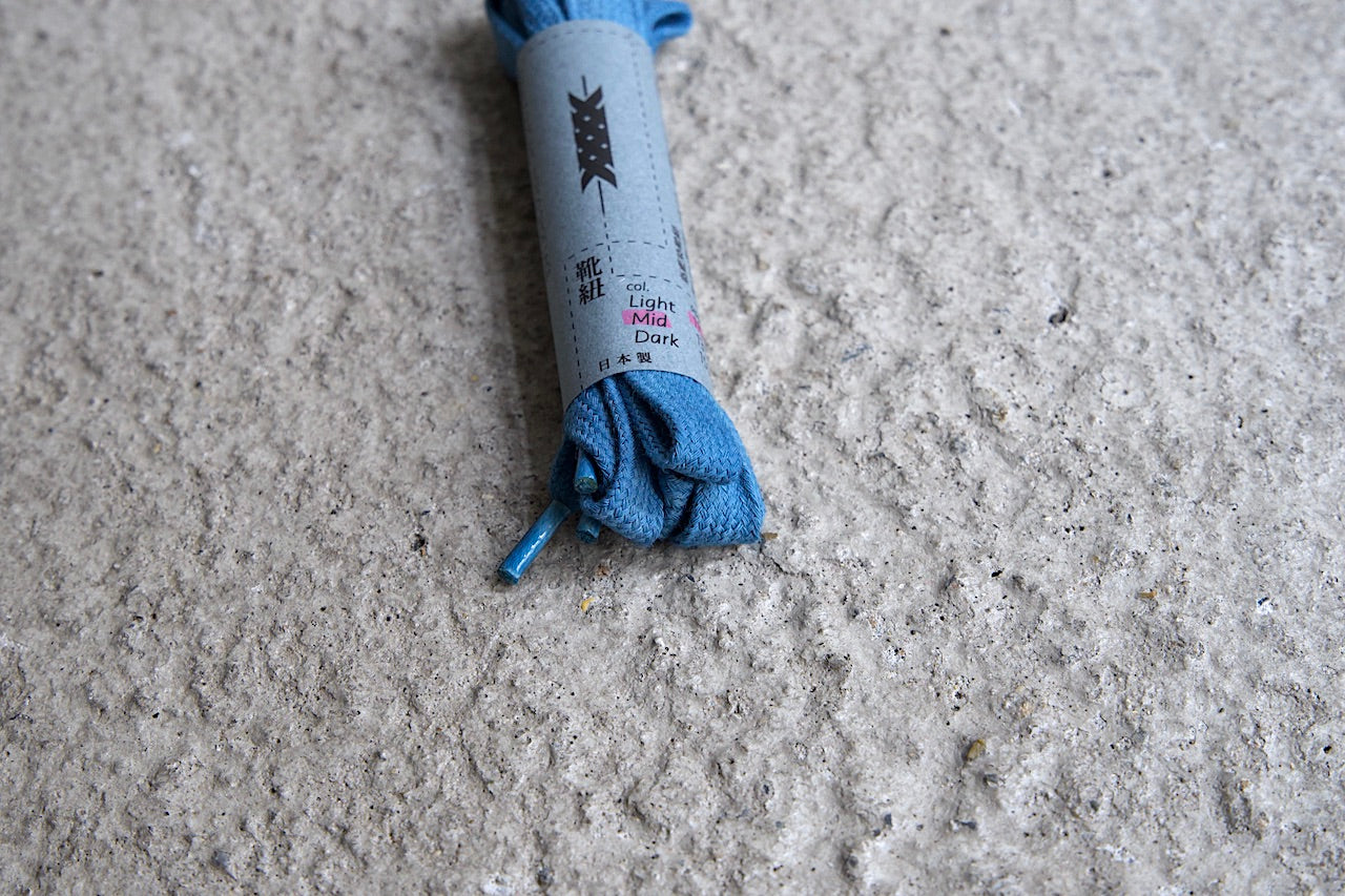 Flat indigo dyed shoelaces. Recommended for 6-hole low-cut sneakers and shoes.Hole diameter