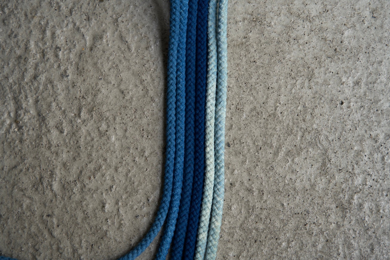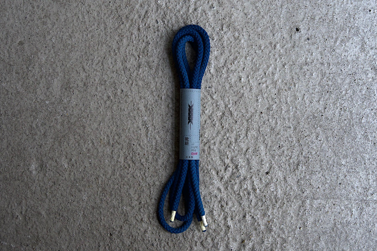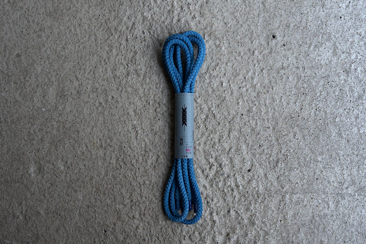 Round indigo dyed shoelaces. Recommended for 6-hole low-cut sneakers and shoes.