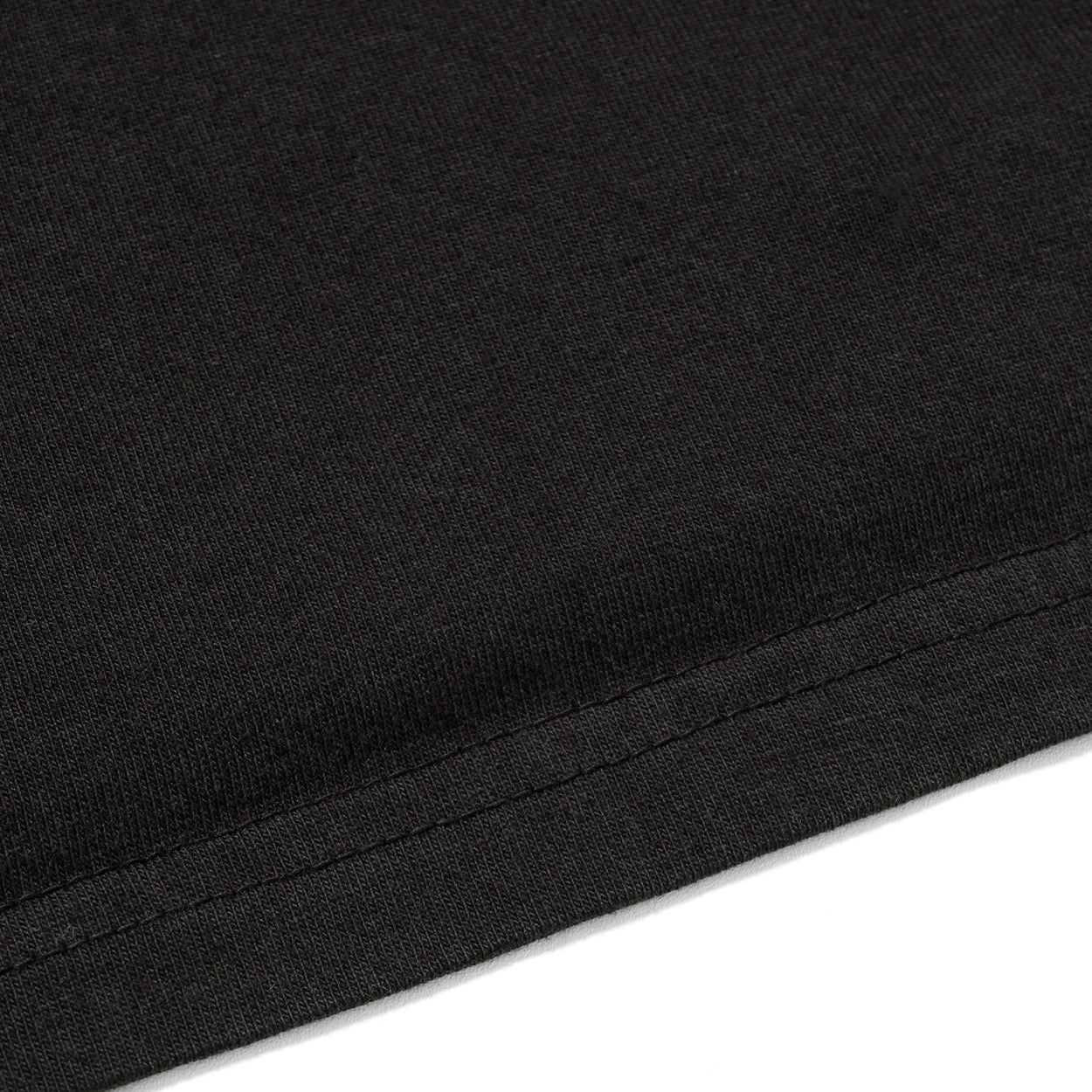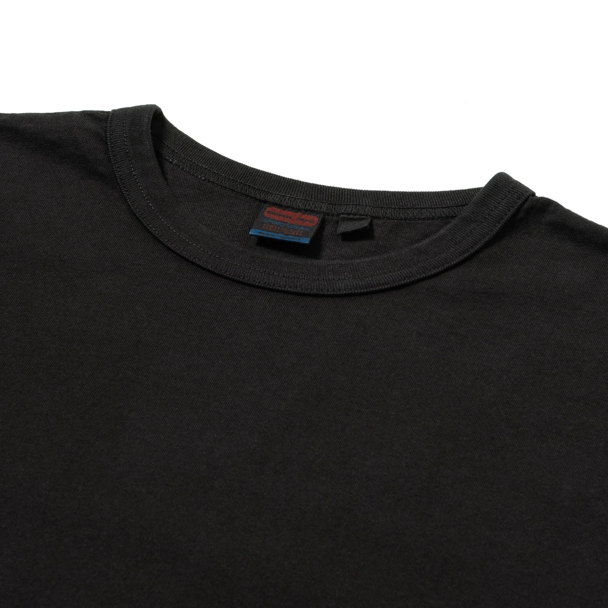最もベーシックな半袖Tシャツの佇まいを持ち、20番手のコーマ糸を使用して編み上げています。縫製に用いた綿糸も含め、すべてを製品染め(ガーメントダイ)で染色し、全体を統一感のあるトーンに仕上げました。