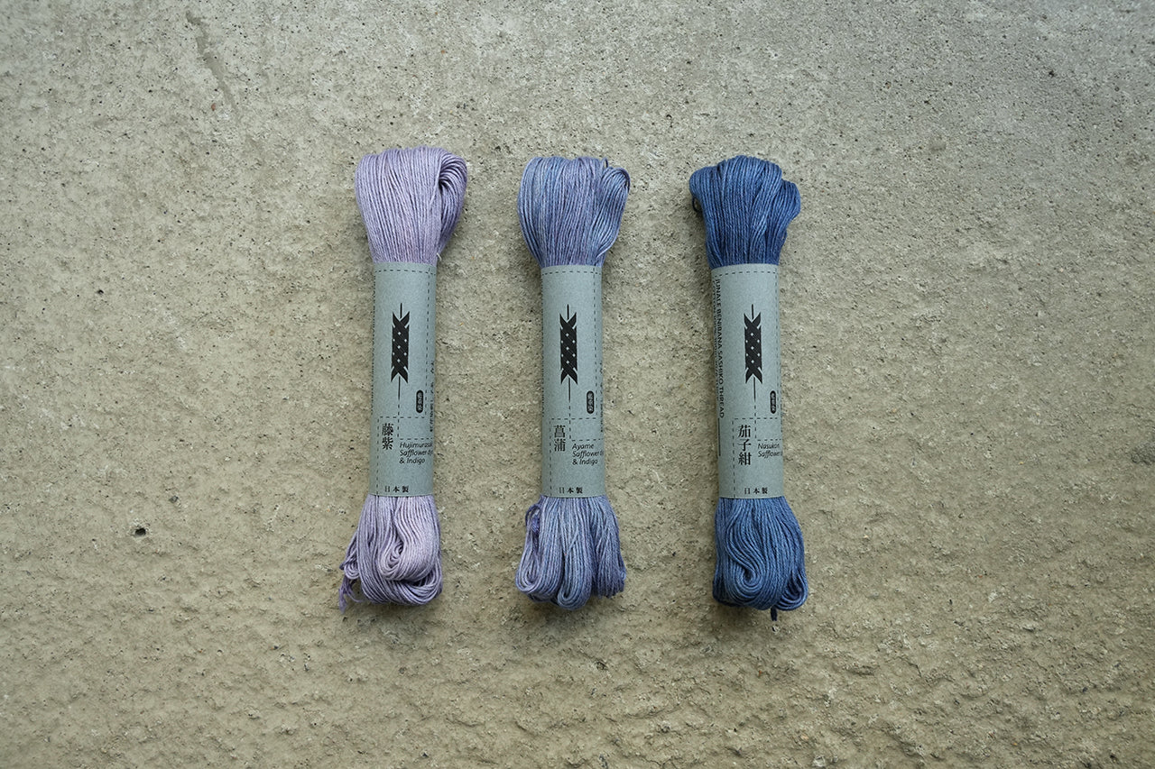 紅花染 藍重ね 刺し子糸 大綛100m